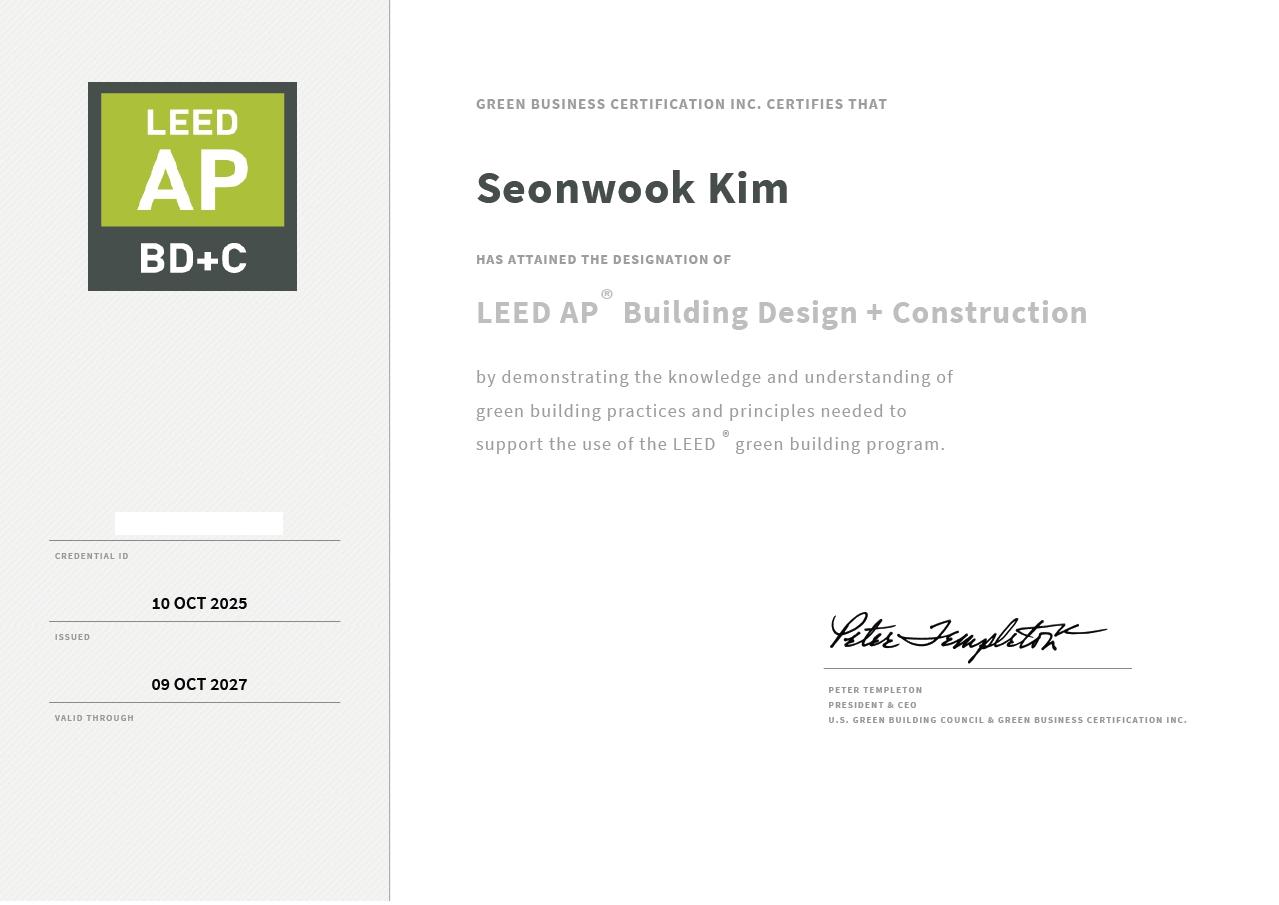 USGBC에서 제공하는 카테고리별 Intent 및 requirement뿐만 아니라 특수 크레딧에 대해 자세하게 공부할 수 있어 많은 시간이 단축되었습니다.