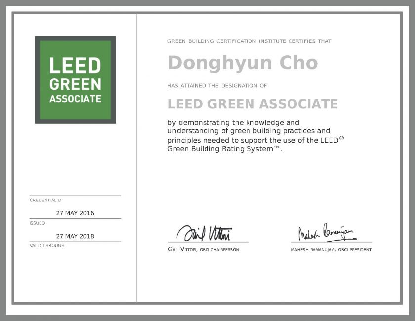 | LEED 시험을 응시하게 된 경위 | 언제부터 인지 건축물을 접할 때면 항상 빠지지 않고 등장하는 단어가 바로 “친환경”이라는 말이고, 바로 이 “친환경 건축물”을 가장 체계적이고 합리적으로 구현하도록 도와주는 전문가가 LEED AP라는 생각에 공부를 시작하게 되었습니다. |