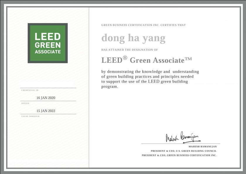 1) 전기엔지니어로써 LEED GOLD 등급을 받은 초고층건물을 인허가, 설계, 시공, 준공, 운영까지 10년간 진행하면서 실질적으로 운영 관리하였음. 2) 전기를 전공하였으나 건축, 기계, 조경, 운영 등 타전공을 공부하고자 하는 욕구가 있었고 영어공부도 동시에 할수있었음. 3) 취득시 매월 급여에 자격수당이 지급되는 이점과 사내 인적자원으로써의 경쟁력이 확보될수있음. |