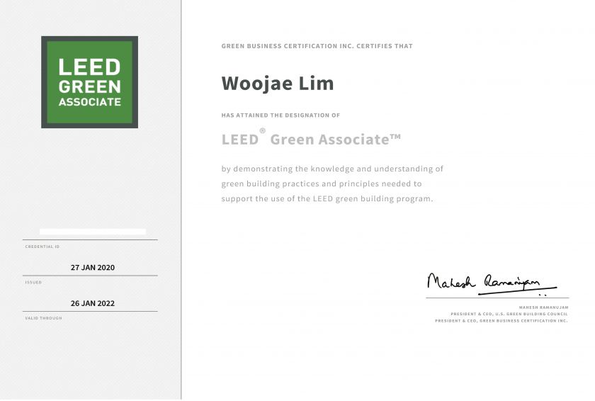 | LEED 시험을 응시하게 된 경위 | 학교에 입학할 때 한창 LEED가 각광 받는 모습을 보며 실무를 할 때 꼭 취득하려 마음먹었습니다. |