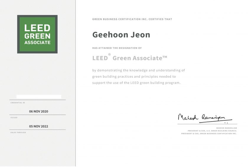 | LEED 시험을 응시하게 된 경위 | 맡은 해외 프로젝트에서 LEED 인증이 필요한 설계를 요구하여 LEED에 대해서 공부하고자 준비하게 되었습니다. |