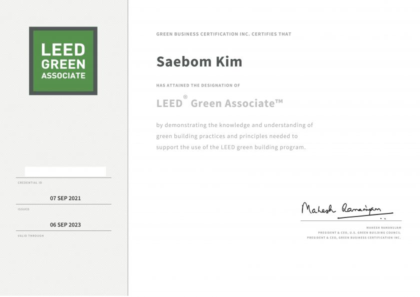 | LEED 시험을 응시하게 된 경위 | 학교 수업때 리드에 대해서 알게 된 후 관심이 생겨서 준비하게 되었습니다. |