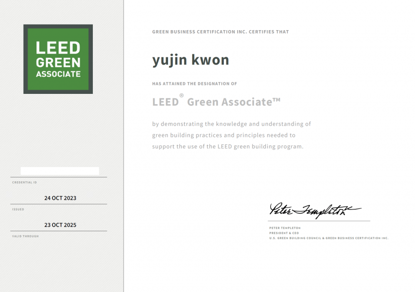 준비 기간이 타이트한 탓에 아래 흐름과 같이 학습을 진행하였습니다~ 현재 일을 같이 하고 있어서 출퇴근 시간에 틈틈이 강의를 수강하였는데, 워낙 잘 정리를 해주셔서 좋은 결실을 맺은 것 같습니다^^ 1. Location and Transportation (LT) ~ Indoor Environmental Quality (EQ) 우선 수강 및 핵심 흐름 파악 → 각 챕터별 나만의 정리 노트 만들기 → 연관 연습문제 풀이&오답노트 작성하기 2. Location and Transportation (LT) ~ Indoor Environmental Quality (EQ) 영역 오답노트 재풀이 3. LEED Green Associate & AP + Innovation and Regional Priority (IN & RP) 영역 수강 및 핵심 흐름 파악 → 각 챕터별 나만의 정리 노트 만들기 → 연관 연습문제 풀이&오답노트 작성하기 4. LEED Green Associate & AP + Innovation and Regional Priority (IN & RP) 영역 오답노트 재풀이 5. 시험 1일전 전체 챕터 강의 재수강 및 오답노트 복습 |